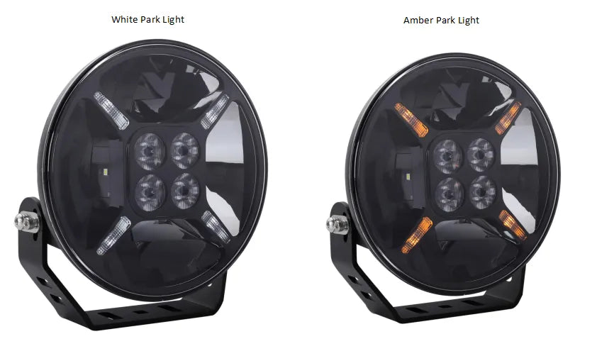 > 1 x 7" Round LED Driving Light w/ White or Amber Front Position Lamp (Black Fascia)